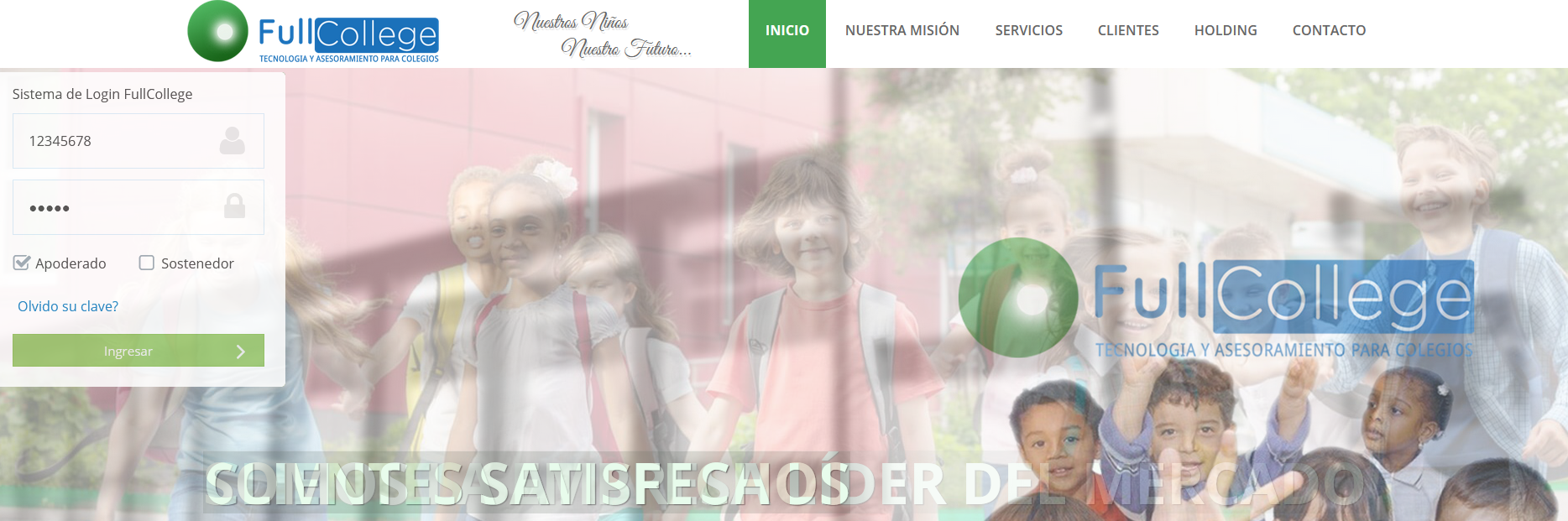 lo que tiene que hacer es ingresar a https://www.fullcollege.cl/ , luego ingresar el rut del apoderado sin el guión ni dígito verificador del apoderado, la clave viene siendo los cinco últimos dígitos del rut del apoderado antes del guión por último presionamos en la opción de apoderados.