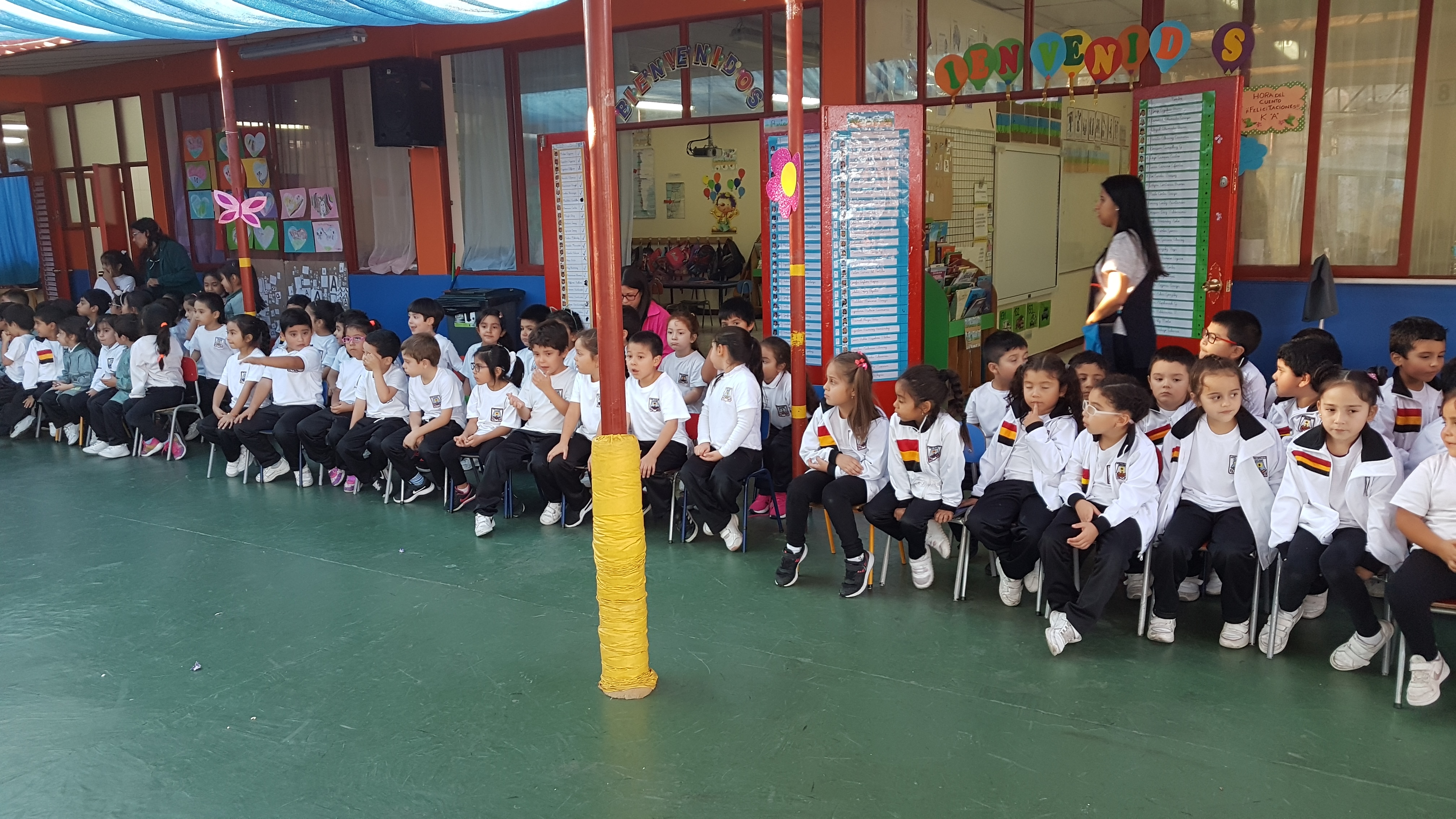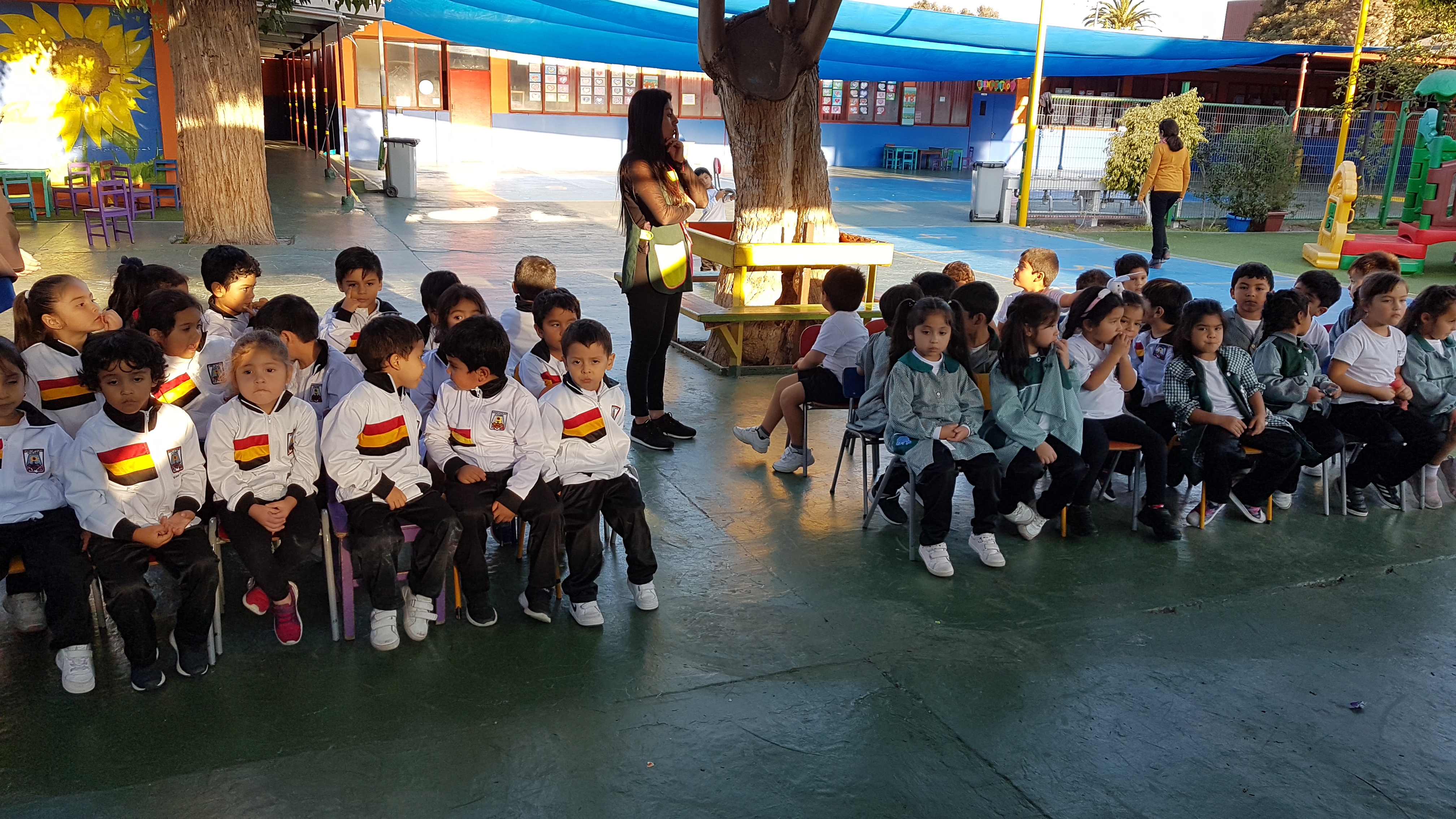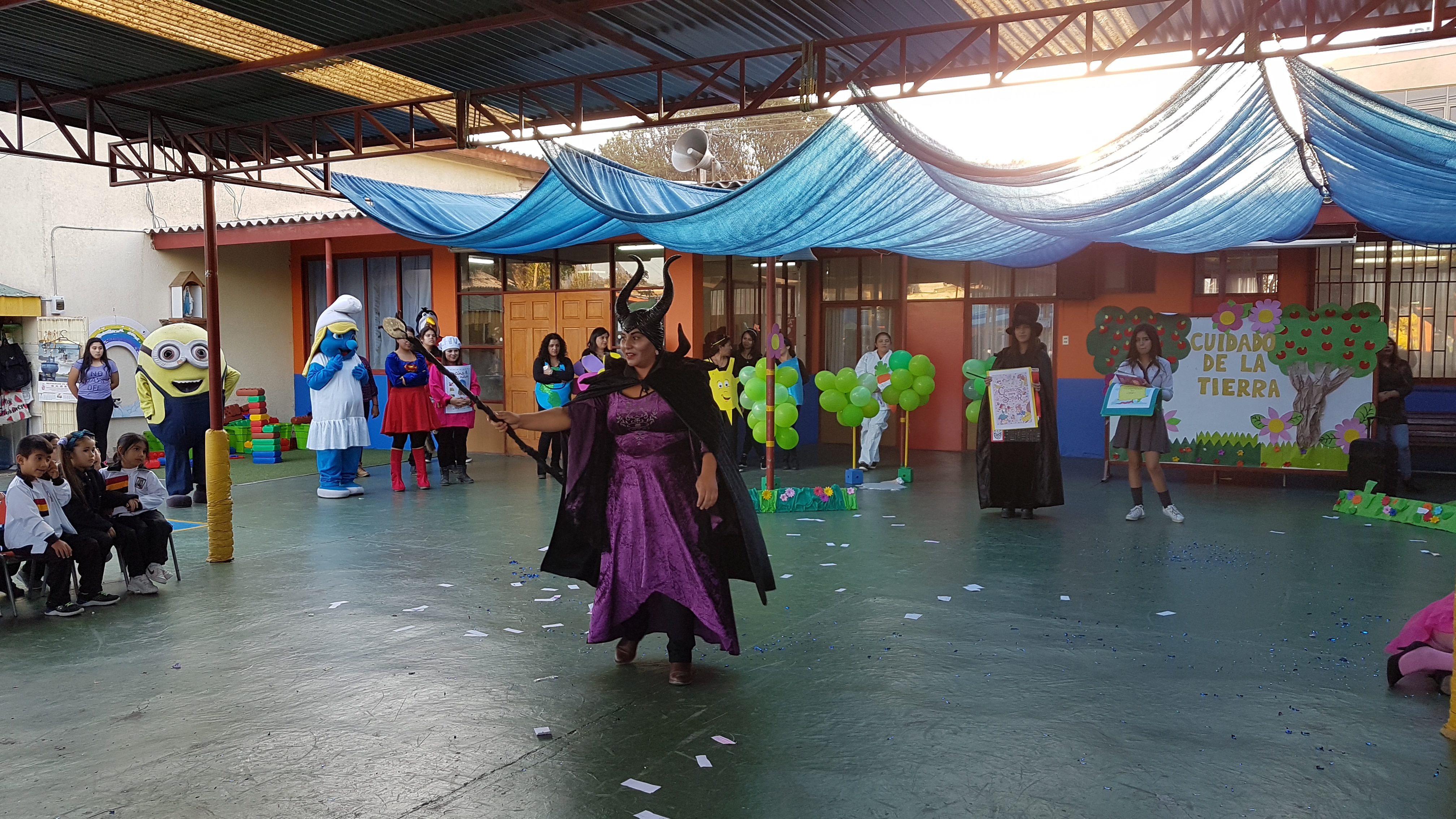 En la jornada de la tarde, también estuvieron presentes los padres y apoderados, participando con entusiasmo y alegría, en la cual presentaron "Cuidado de la Tierra", "importancia del Libro"y "Convivencia Escolar" .....