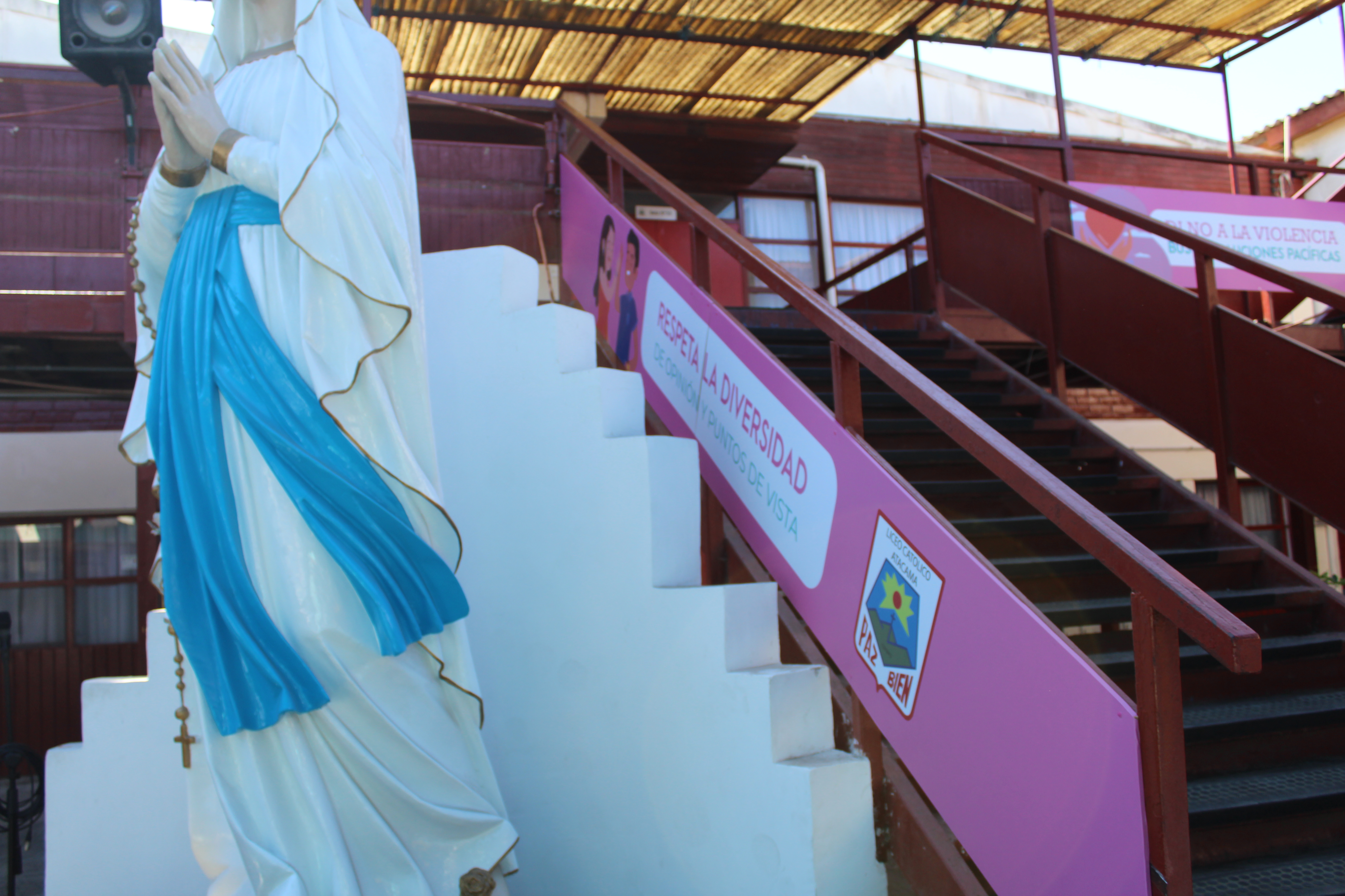 Con orgullo damos a conocer la intervención visual del patio de enseñanza media del liceo con mensajes que promueven la sana convivencia escolar, los valores, la prevención de conflictos, la creación de un ambiente positivo, el refuerzo de la identidad escolar, la participación estudiantil y la espiritualidad. Es una inversión en el bienestar y el desarrollo positivo de nuestros estudiantes. Esperamos poder promover los valores fundamentales que beneficiarán a toda nuestra comunidad educativa.