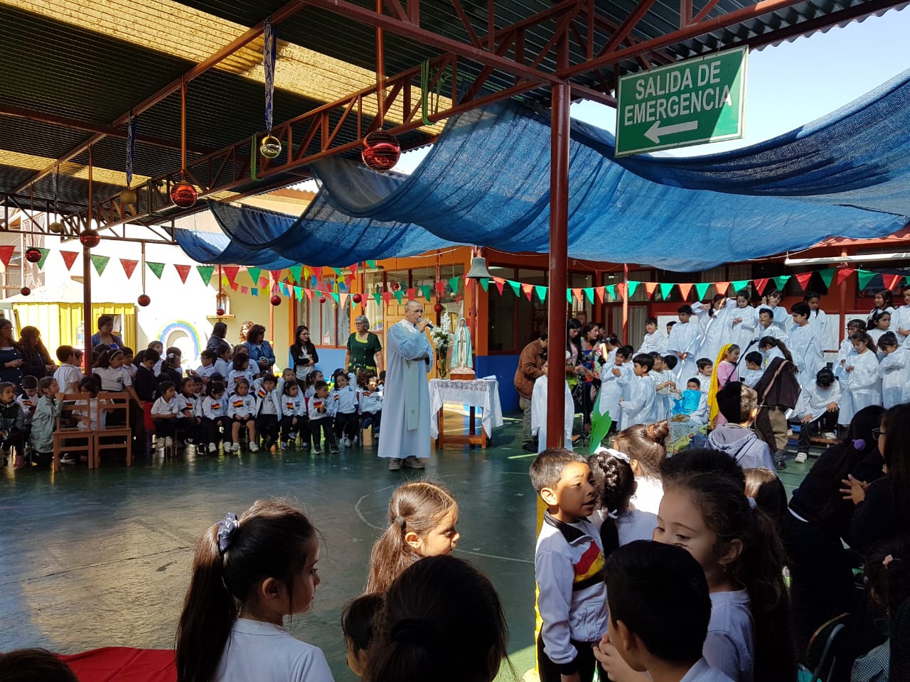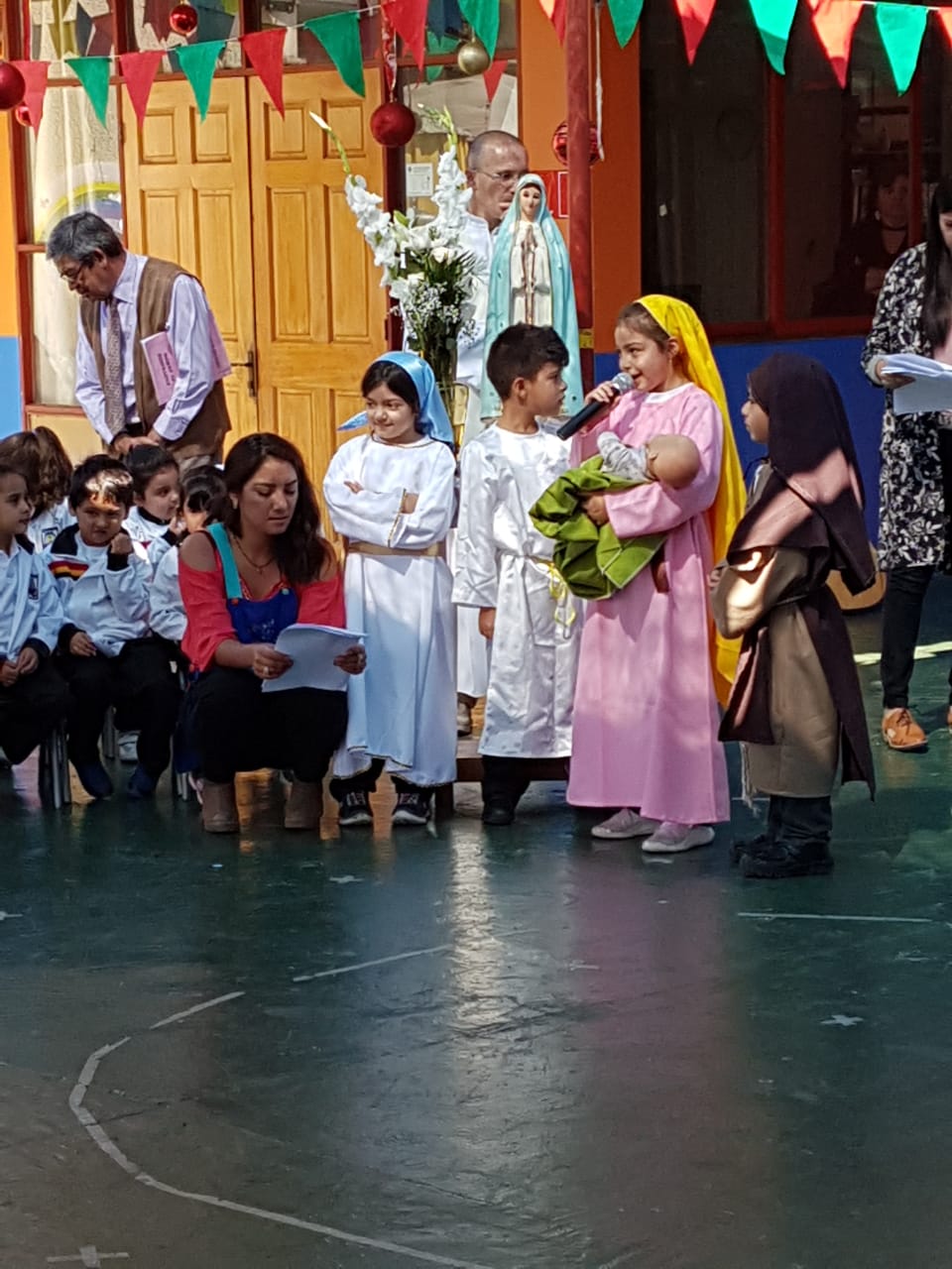Así fue como nuestro niños(as) de nuestro nivel recibieron la bendición de la corona;Participando además con cantos y una pequeña recreación de la "Asunción de la virgen María."